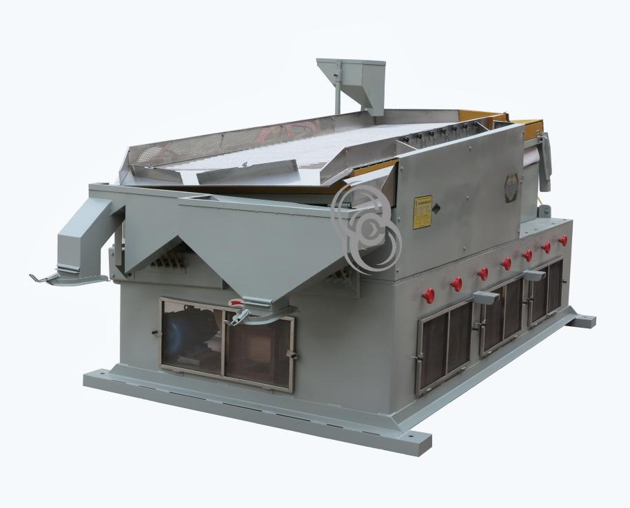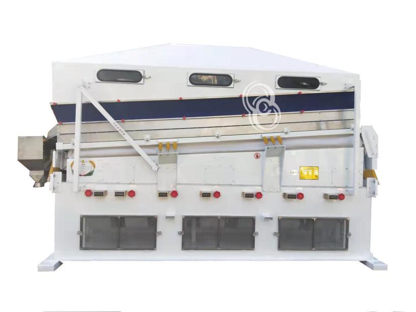 篩選體積相同而比重不同之豆類或谷類(如芝麻、綠豆、瓜子、種子等),去除未成熟與蟲蛀及破碎的豆類或谷類。不受場地限制,一般加工廠均可使用。可依物料顆粒大小、干濕度,調節速度進行篩選。此機型可單機使用,配合整廠設備(如選石機、大小選別機、磨光機…等)效果更佳。
